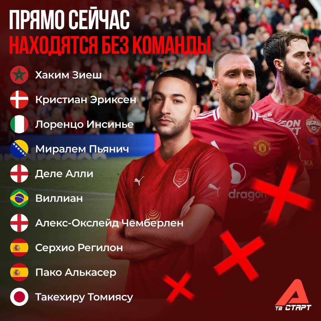 🫣😯 Сезон уже в разгаре, а эти топчики до сих без команды Зиеш, Эриксен, Пьянич и многие другие продолжают находиться в статусе свободных агентов 🆓 Ждём кого-то из этого списка в турнирах, транслируемых на ТВ СТАРТ? 🤔 🔹 Наше приложение в Google Play 🔹 Наше приложение в RuStore 🔹 Наше приложение в App Store