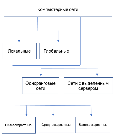 По территориальному признаку сети разделяются на локальные и глобальные.