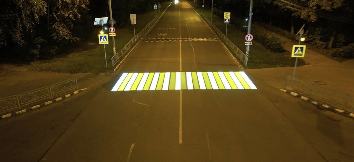 Светодиодную подсветку самой «зебры» или проекционные лазерные лучи, создающие яркий световой коридор по обеим сторонам от перехода. Ночью или в плохую погоду это делает пешехода и сам переход видимым за сотни метров.