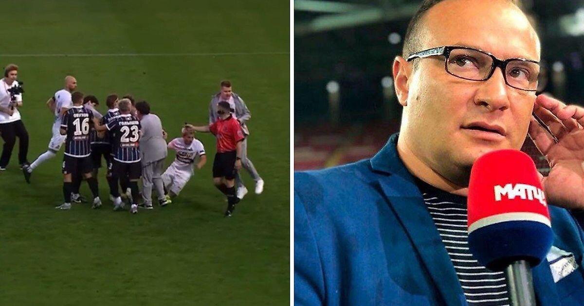 В матче открытия WINLINE Кубка Лиги между «Амкалом» и ФК «10» (1:2) после забитого пенальти сотрудник ФК «10» Андрей Клинников выбежал на поле и толкнул в спину игрока «Амкала» Василия Маврина. – Наверняка видели инцидент в матче «Амкала» и ФК «10»? – Да, видел. Знаю очень хорошо Андрюху Клинникова. Он работал на «Матч ТВ». – Как вы думаете, почему он себя так повел? – Это скорее была защитная реакция. Я ни в коем случае его не оправдываю. Наказание он понесет и от лиги, и, я уверен, от Азамата, и от «Десятки». Он сам все прекрасно понимает. Написал правильный пост в телеге. Он абсолютно безобидный парень, спокойный. Но, видимо, медиафутбол, многих бесов из тебя достает. И, когда ты бежишь в толчею, в группу своих ребят, которые хотят порадоваться и видишь кого-то чужого, то, разумеется, умышленно или неумышленно, ты его как-то заденешь, толкнешь, не думая о последствиях, потому что в тебе в этот момент бурлит бес. Конечно, это не красит. Я думаю, что Андрюха сам прекрасно понимает, чт