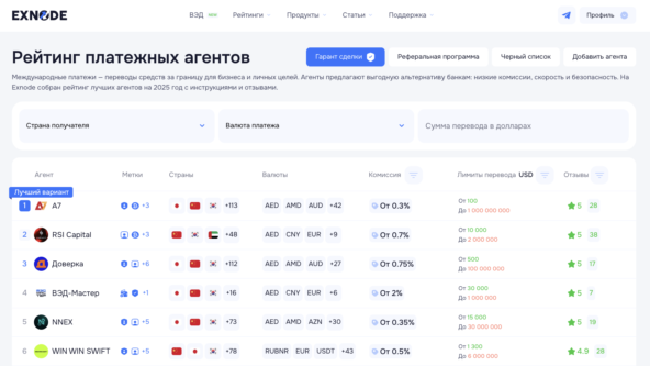 Современные платёжные агенты дают бизнесу реальную альтернативу. Они позволяют проводить переводы за 1 день, заранее фиксировать комиссию, работать с любыми валютами и странами, получать юридические документы и при этом быть уверенными в сохранности средств. Дополнительный уровень защиты даёт мониторинг Exnode: сервис помогает выбрать проверенного агента и при необходимости может выступить гарантом сделки, что делает даже крупные переводы безопасными и прозрачными.