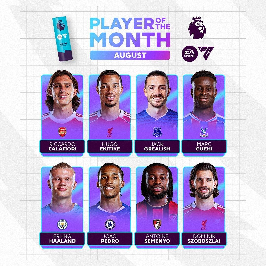 Калафьори, Экитике, Грилиш, Гехи, Холанд, Педро, Семеньо и Собослаи номинированы на звание лучшего игрока Премьер-Лиги по итогам августа 🥇