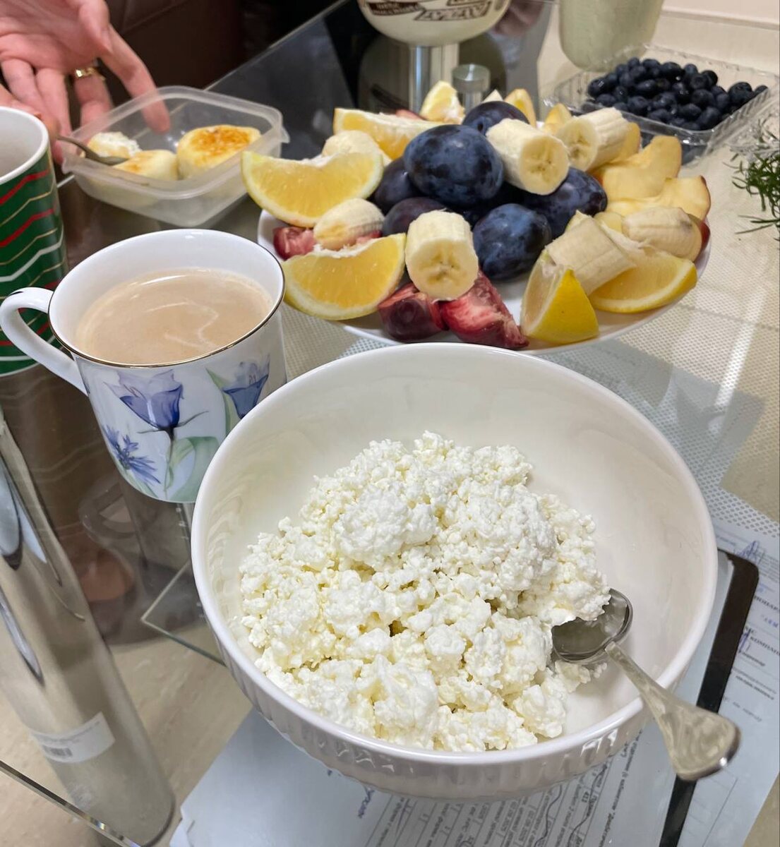 Сегодня: наш прекрасный завтрак 🧺; на обед язык со спиральками (их не доела), сливы, на ужин вареники с картофелем и грибами, индейка, яблоко и пирог с творогом и ягодами; до ужина ещё было пару слив Совместные душевные завтраки на работе - профилактика выгорания 🌸 И этот факт доказан исследованиями! 🌸