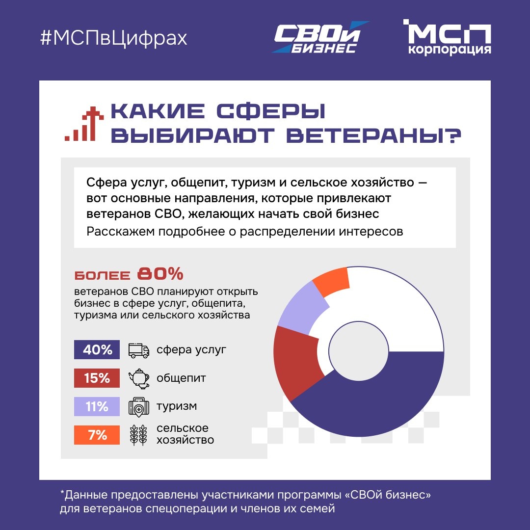 💪 Федеральная программа по предпринимательству для сахалинских участников СВО 📶 По данным Корпорации МСП, более 80% ветеранов СВО хотят открыть свой бизнес в сферах услуг, общепита, туризма и сельского хозяйства. Программа «💜💜💜й бизнес» уже реализуется в 38 регионах. 💜💜💜💜 💜💜💜💜💜💜💜💜💜💜 ⏩центр «Мой бизнес»: ⚫️предоставление кредитов по ставке от 5% для участников программы ⏩Опора России: ⚫️включение в экосистему предпринимательства ⚫️наставничество успешных предпринимателей ⚫️вступление в региональные отделения «ОПОРЫ РОССИИ» на особых условиях для участников программы ⏩ ПАО «Банк ПСБ»: ⚫️электронное удостоверение ветерана боевых действий ⏩ Корпорация МСП: ⚫️ специальное гарантийное обеспечение участникам СВО ⬆️ Узнать больше о программе и подать заявку — можно на цифровой платформе МСП.РФ #СВОйБизнес 📱 Мой бизнес_65: всё для самозанятых и малого бизнеса