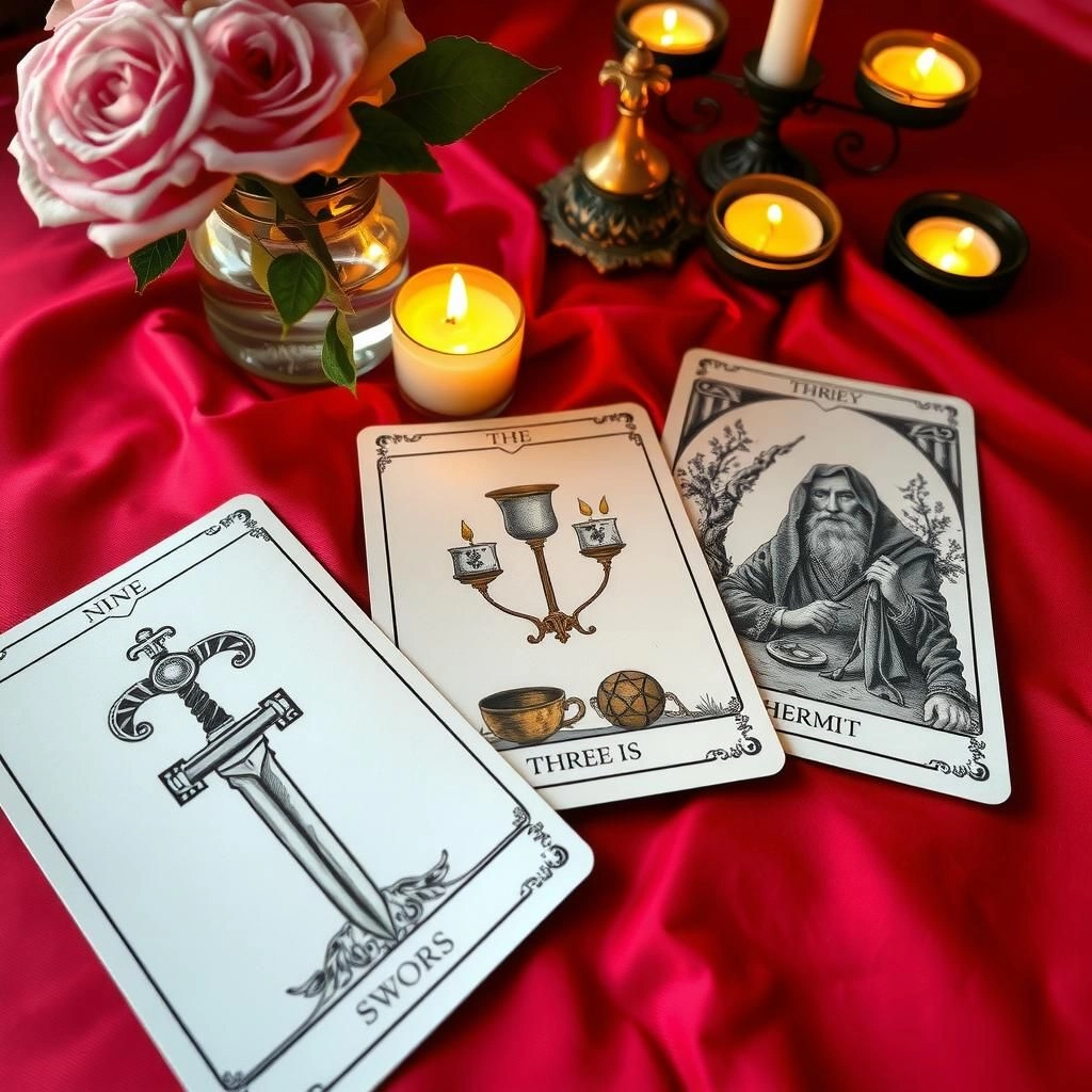 Эта карта в позиции прошлого — мощный индикатор. 9 Мечей — это карта ночных кошмаров, крайней тревоги, угрызений совести и парализующего страха. Она указывает, что разрыв для него не был простым или легким событием. Он вызвал у него серьезные муки совести, глубокое сожаление и, возможно, даже чувство вины. Это карта "самобичевания", когда человек просыпается среди ночи и не может уснуть, потому что его терзают мысли о случившемся, о своих ошибках, о сказанных словах. Разрыв оставил его в состоянии настоящей душевной боли и отчаяния. 2. 3 Кубков (Настоящее / Его текущее состояние)