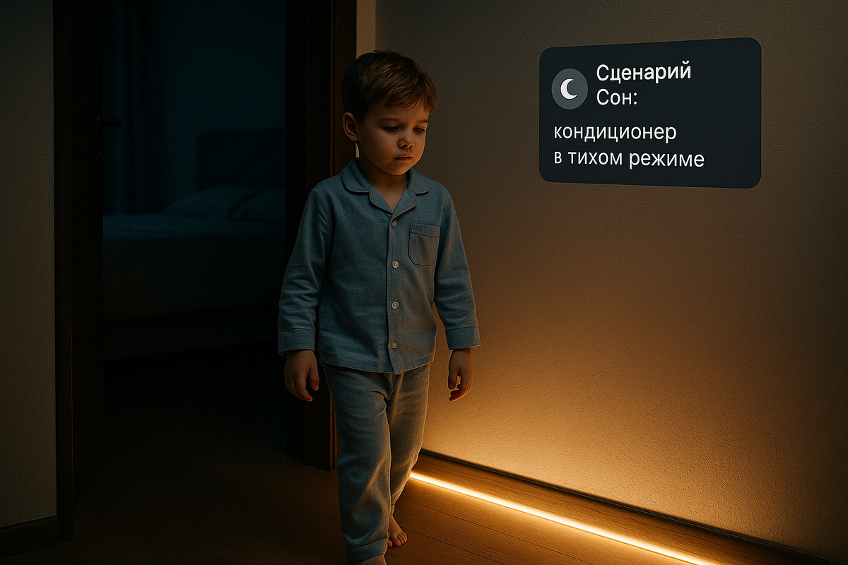 Летом многие засыпают под шум кондиционера. Сначала приятно — прохлада, свежий воздух. Но ночью начинаются проблемы: становится слишком холодно, дует прямо в лицо, а утром просыпаешься с головной болью или насморком. Обычный кондиционер не думает за вас. Но в умном доме можно настроить сценарий «Сон», чтобы техника подстраивалась под биоритмы человека. Ирина рассказывала: