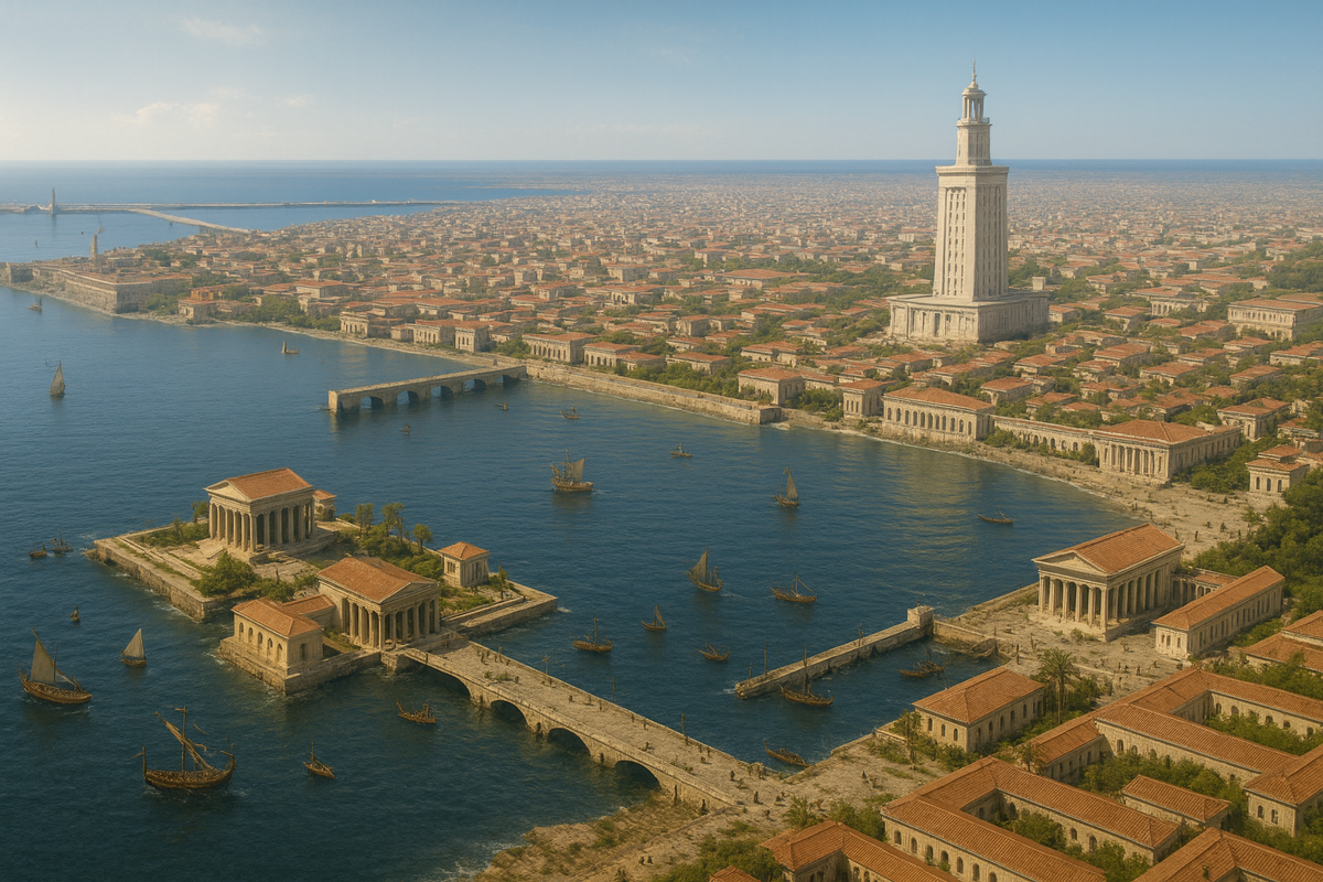 Почему «второй Рим»: именно здесь решалась внешняя судьба хлеба. Каир мог собрать зерно, но только Александрия превращала его в международный товар. Поэтому позднее (в XIII в. SC) тут и появится персональная «витрина» — Клеопатра, реальная правительница порта, — это органическое продолжение модели, запущенной в 882.