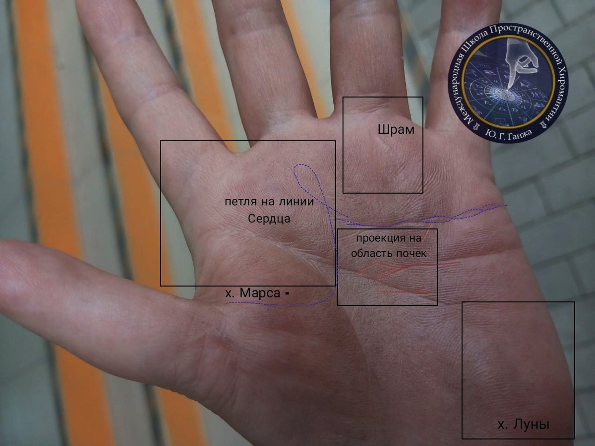 🔺Линия Сердца помимо того, что сама по себе плохого качества, так еще и с островами и образует связку-петлю на Марс -, замыкая собой орган - Сердце с данной планетой, где как раз проявляются резкие, внезапные, агрессивные моменты по здоровью, в данном случае с сердцем. Все завязано на сердце.