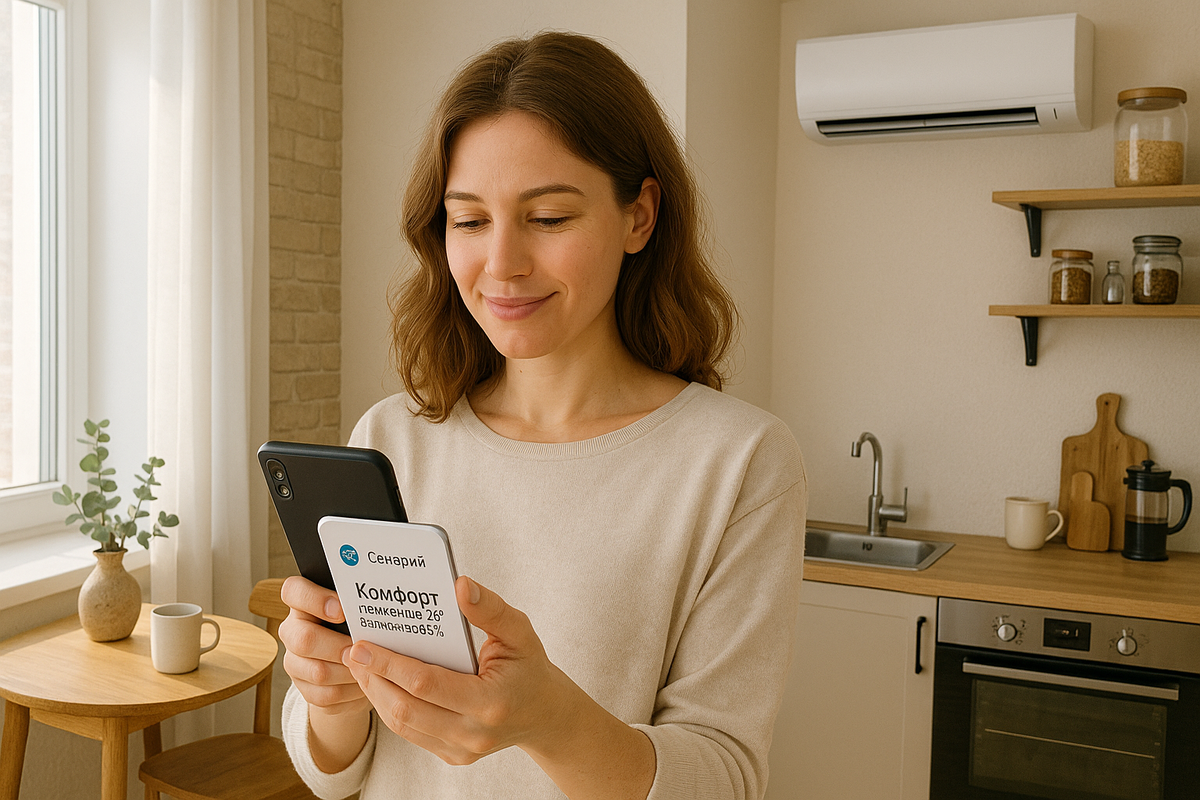 Многие говорят: «У меня маленькая квартира, зачем мне умный климат? Это же для больших домов, коттеджей, где куча комнат». На самом деле всё наоборот: именно в маленьком пространстве ошибки в микроклимате ощущаются сильнее. Здесь любая мелочь превращается в проблему: душно, сухо, влажно или слишком жарко. Умный климат решает эти вопросы даже в однокомнатной квартире и делает жизнь комфортнее. Анна жила в квартире-студии. Казалось бы, одно помещение, зачем что-то усложнять? Но зимой у неё всегда пересыхал воздух: батареи жарили, а утром она просыпалась с сухим горлом. Летом в квартире становилось душно, даже если был включен кондиционер. «Я думала, что умный климат — это для богатых, — признавалась она. — Но после установки датчиков и увлажнителя в связке с системой стало реально легче дышать. Я перестала болеть простудами каждые две недели». — Следит за температурой и влажностью круглые сутки.