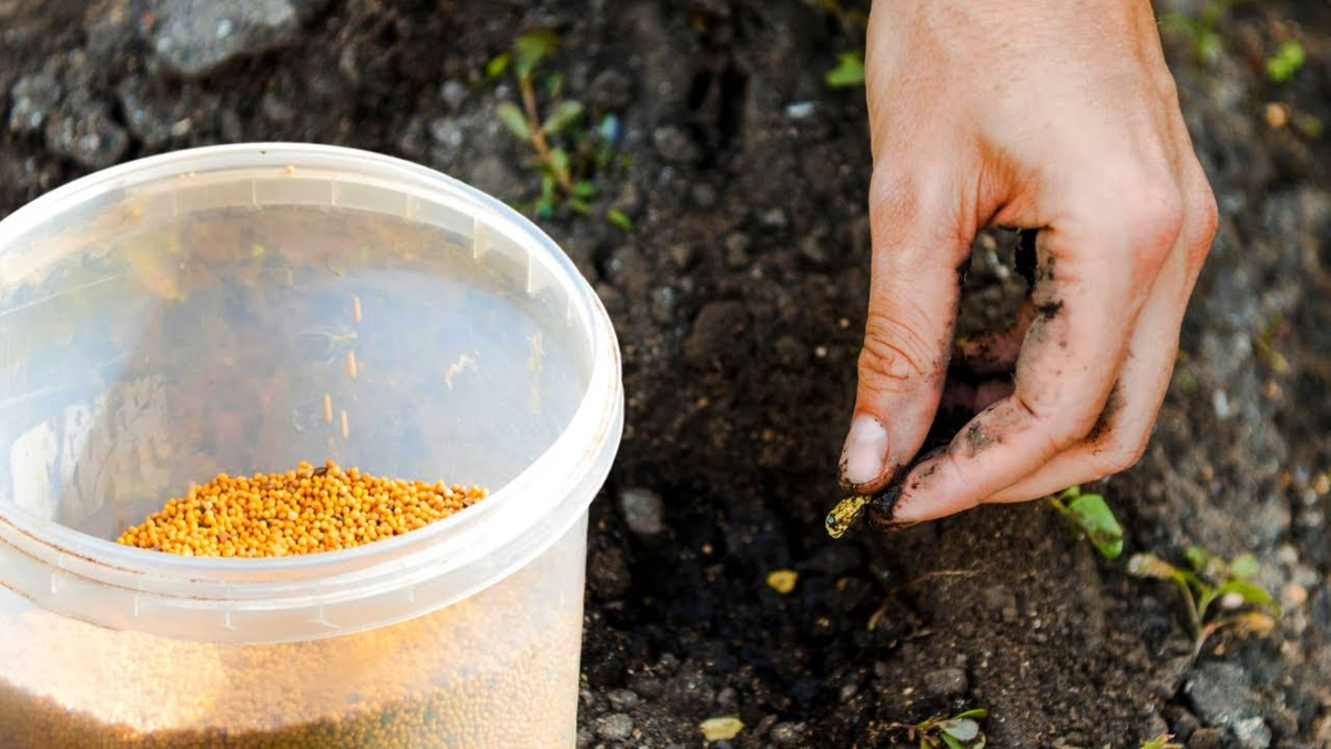 - Горчица белая — обязательно. Она как раз гонит проволочника и обеззараживает почву.