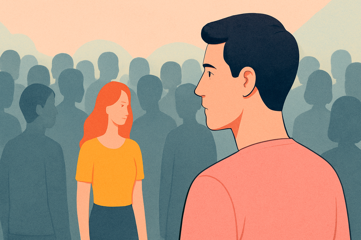 В целом, мы живём среди большого количества людей, но не каждый из них нас замечает. Человек, который о нас много думает, замечает нас всегда. Например, он может рассказывать историю, что шёл по улице и спутал кого-то с вами.