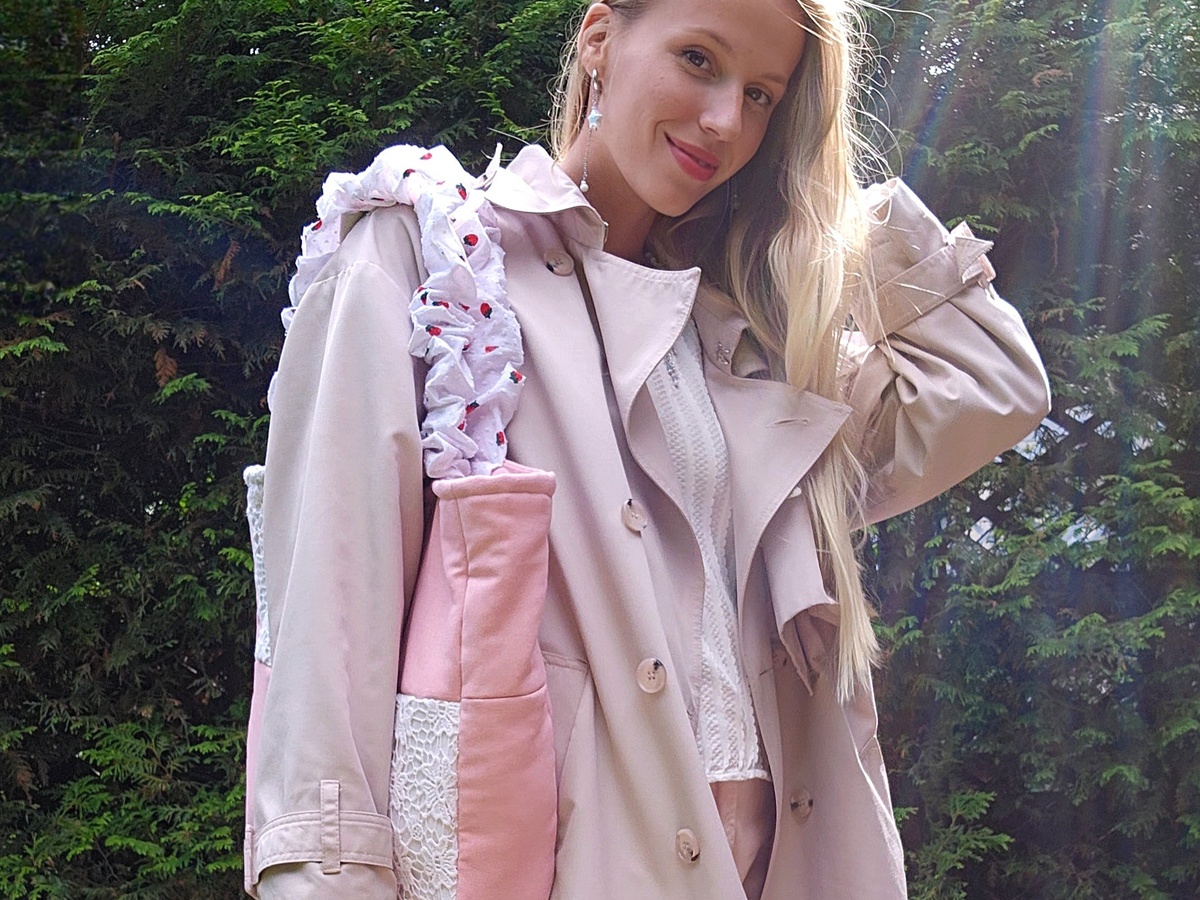 Я часто мечтаю в изделиях. Точнее мечтаю об ощущениях, которые раскрывать получается благодаря швейной машинке и парочке катушек с нитками. Это не что-то мимолетно-воздушное и неосязаемо-далёкое. Мои мечты довольно реальны — я надеваю их каждый день, тем самым снова и снова исполняю, и радуюсь своей маленькой магии. Сумочки мои не просто квадраты из ткани, а маленькие хранители ощущений, воспоминаний. Дело было в лесу, ранним утром после очередного дождя. Такая густая и звонкая тишина, что начинаешь буквально слышать ароматы. Не можешь сразу разобрать это изобилие. Солнце все быстрее пробивается сквозь листву, и весь мир превращается в волшебную шкатулку с кружевными лучами. На каждой травинке, на каждом листочке висит по бусинке. Они переливаются и звенят стоит лишь случайно задеть. А, если присмотреться чуть лучше, то видишь главное сокровище леса — кусты земляники, они везде, тянутся длинными маршрутами. Именно это стало моим образом для сумочки. Она практичная — внутри есть карма