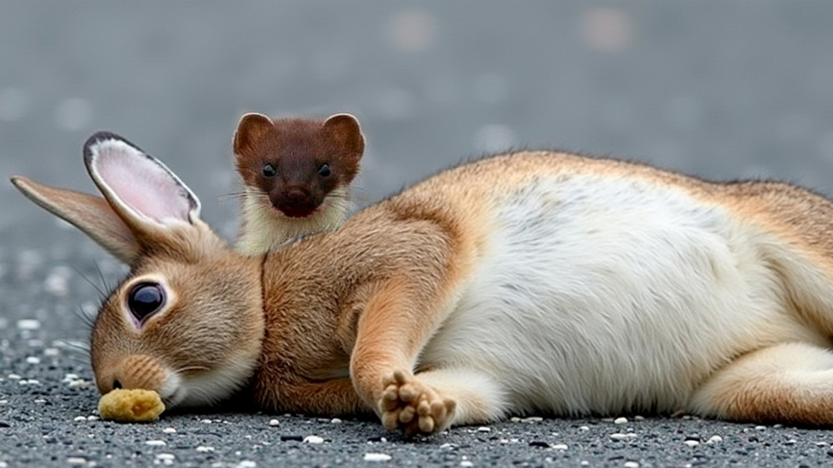 У горностая есть и хитрые приёмы. Иногда он буквально устраивает шоу: прыгает, кувыркается, носится зигзагами, пока кролик в недоумении смотрит на это «представление». А потом следует мгновенная атака. Игра превращается в охоту.