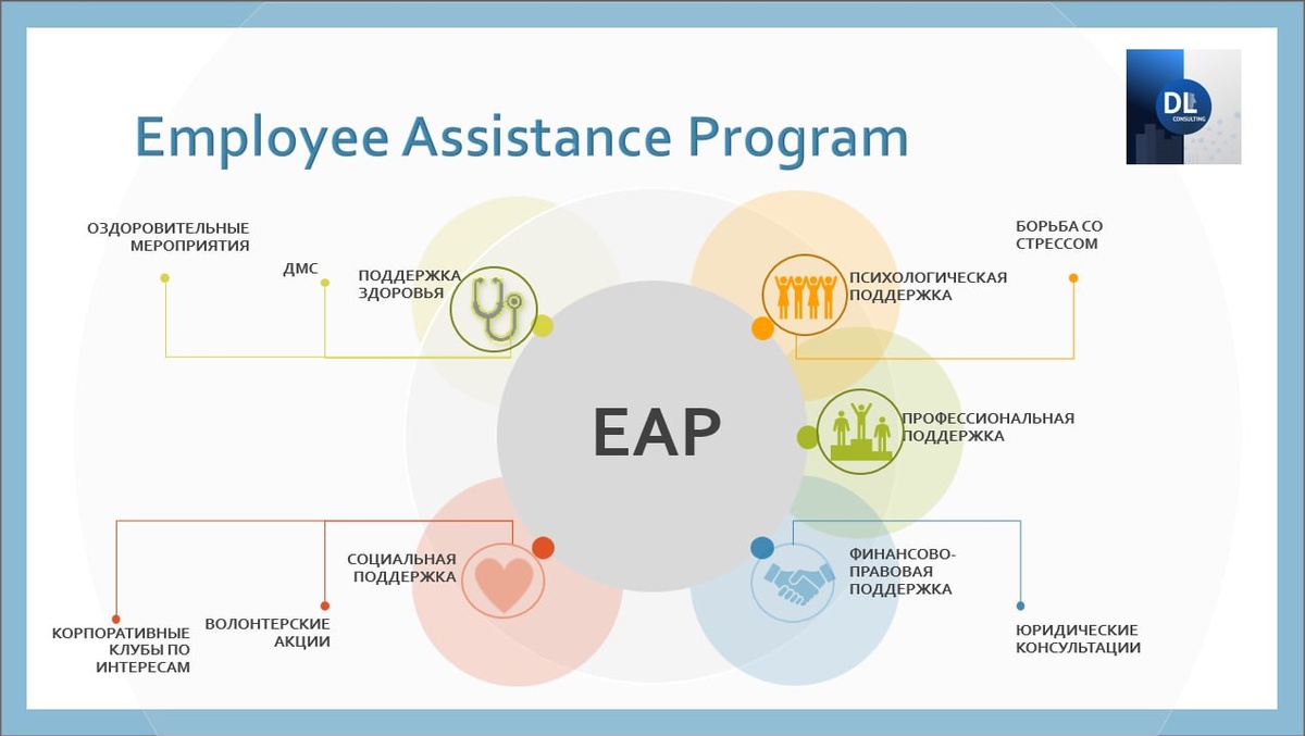 🔠 #АЛФАВИТ БИЗНЕСА Продолжаем изучать важные бизнес-термины простыми словами! 📚 Сегодня речь пойдет о EAP-программах — Employee Assistance Programs (Программы помощи сотрудникам). ✨ Что такое EAP? EAP — это комплекс мероприятий, направленных на поддержку эмоционального благополучия и психического здоровья сотрудников компании. Такие программы предлагают консультации психологов, семинары по управлению стрессом, обучение эффективным коммуникациям и другим важным аспектам, способствующим повышению производительности труда и удовлетворенности работой. 🗣Некоторые элементы EAP-программ: - Поддержка здоровья. Предоставляется ДМС, проводится диспансеризация работников, организуются оздоровительные мероприятия и популяризация здорового образа жизни внутри компании. - Финансово-правовая поддержка. Компания помогает в оформлении налогового вычета, организовывает образовательные мероприятия по финансовой грамотности, планированию бюджета и пенсионным накоплениям. Юридические консультации по