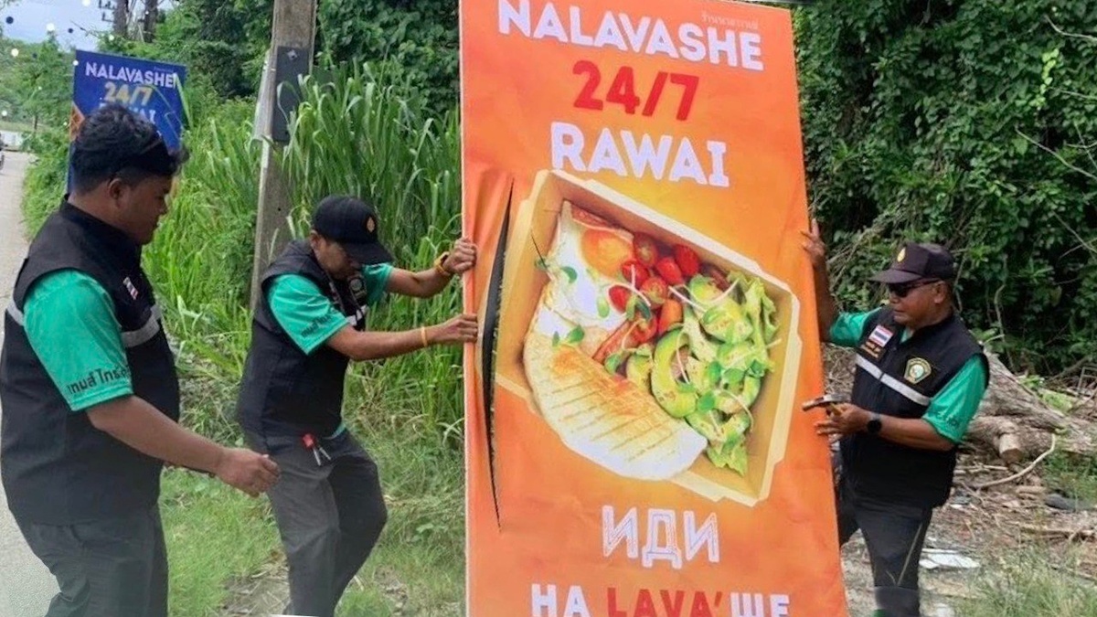 Рекламу русского фастфуда демонтировали в Раваи Муниципалитет Раваи демонтировал рекламные щиты русского фастфуда «На LAVA ШЕ», нелегально установленные на обочинах дорог в южной части Пхукета. Как следует из отчета районных властей, баннеры убрали 3 сентября. Пожаловался ли кто-то на них специально – неизвестно. В сообщении муниципалитета говорится просто об инспекции. Но внимание властей реклама точно привлекла. «Мэр района Раваи Темс Крайтат поручил сотрудникам муниципального отдела правопорядка проинспектировать установленные в Раваи билборды. При выявлении незаконно размещенных билбордов они должны незамедлительно демонтироваться для обеспечения порядка и безопасности пешеходов», – говорится в сообщении муниципалитета. Районные власти не указали, планирует ли муниципалитет привлечь к ответственности сам фастфуд или занимавшегося установкой билбордов подрядчика, если компания размещала рекламу не самостоятельно, а через стороннюю фирму. Ранее муниципалитет Раваи упоминал в кон