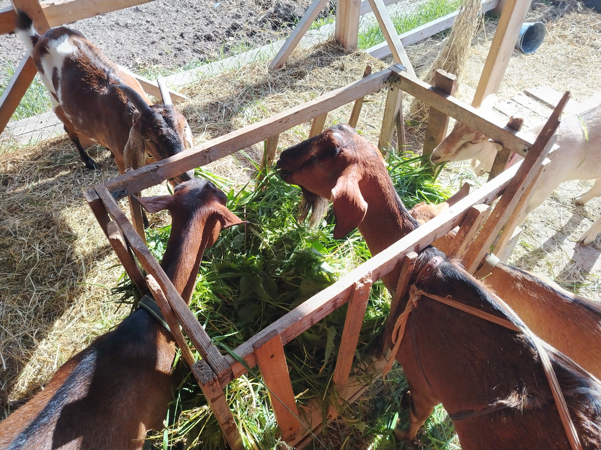 "Во-первых надо сделать нормальную кормушку для сена - это простой ящик, над которым козы могут склоняться и спокойно есть сено или свежескошенную траву, а не мучаться, просовывая голову сквозь решётки. Сами попробуйте покушать как вам неудобно, вывернув шею или задрав голову. Какой-то дурак придумал рептухи, и все повелись, выбрасывая хорошее сено тоннами. Старое сено, оставшееся в кормушке, надо вытаскивать и проветривать, потом снова класть в кормушку, а не кидать курам. Попробуйте, и удивитесь, как козочки экономят и сено и как мало кушают на самом деле."