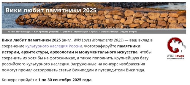 Страница конкурса: [#alias|ru.wikivoyage.org/wiki/Wikiv...|https://ru.wikivoyage.org/wiki/Wikivoyage:Вики_любит_памятники_2025]