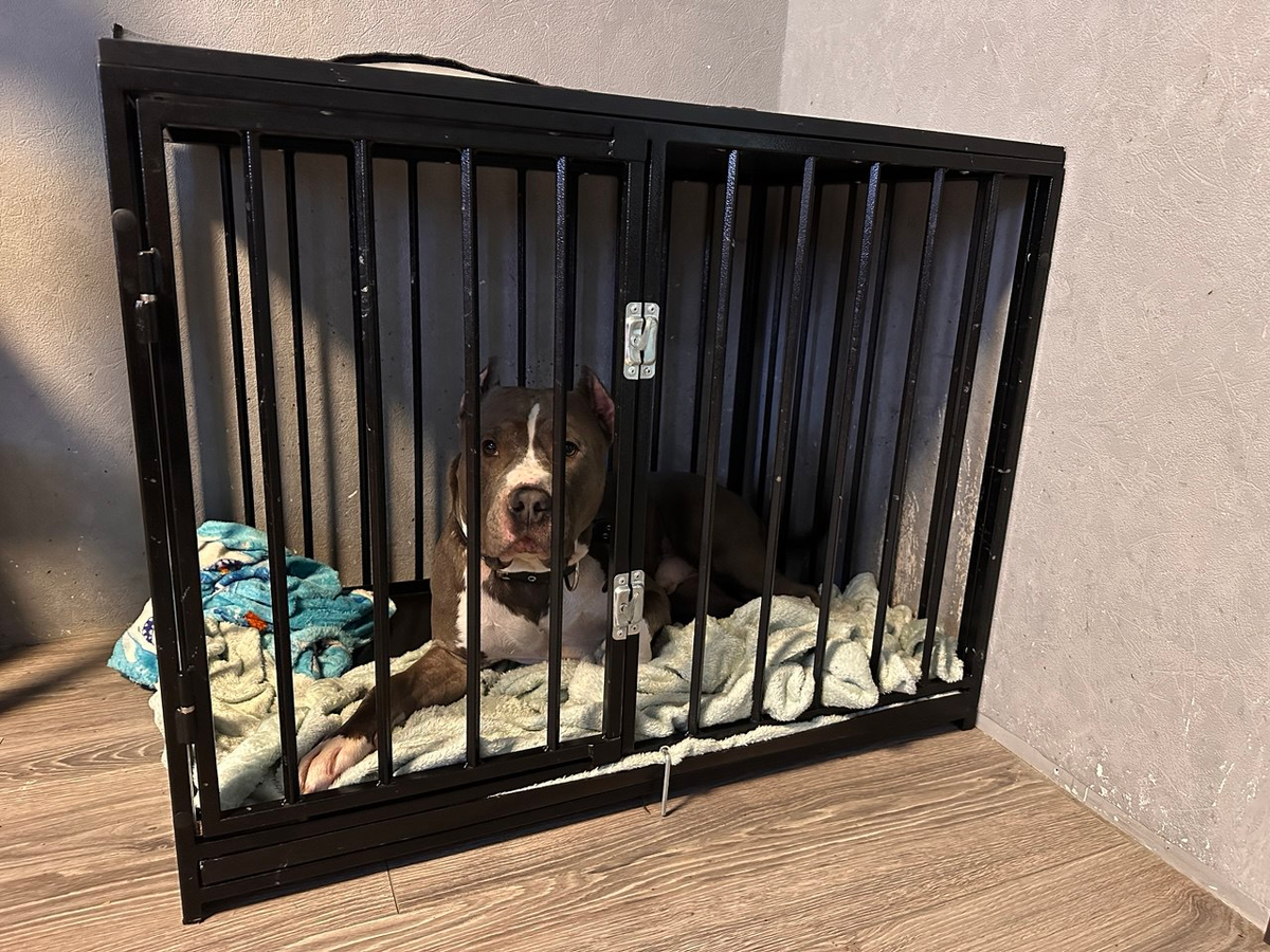 Купил клетку за 15000 рублей для своего стаффа - теперь он спит только в ней