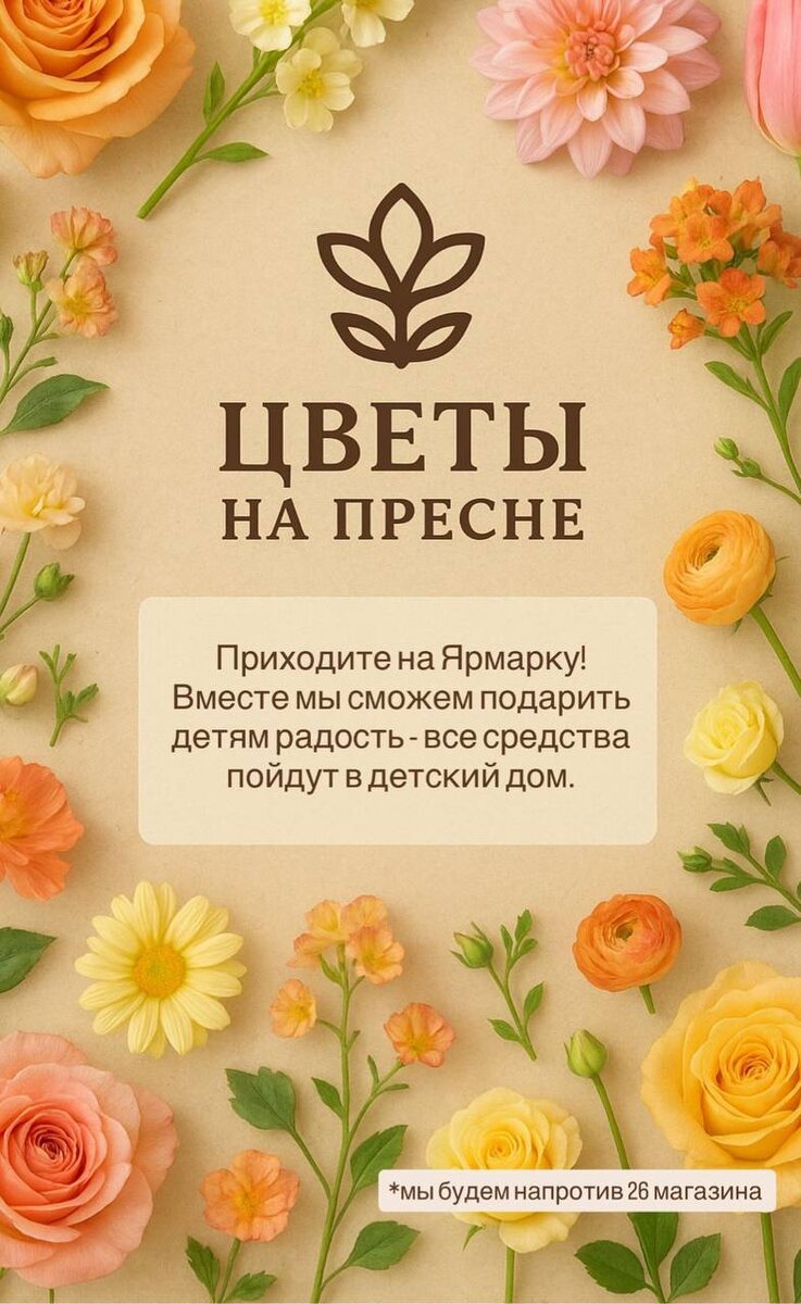 Магазин «Цветы на Пресне» (г. Тында), в лице индивидуального предпринимателя Мищенко Натальи Сергеевны, даже на расстоянии захотели помочь нашему Детскому дому! 🌷 Мы очень рады такому сотрудничеству и приглашаем всех желающих посетить ярмарку, организованную данным магазином: «Цветы + добро = идеальное сочетание! Приходите на нашу ярмарку — вместе подарим детям радость. 🌷 Купил букет — сделал доброе дело. Просто и красиво! Ждём вас на цветочной ярмарке. Пусть ваши цветы украсят не только дом, но и детские сердца. Заходите к нам!🌷 Вместе творим чудеса — приходите за цветами и помогите детям обрести заботу. Один шаг на ярмарку = один шаг к счастливым детским улыбкам. Присоединяйтесь!» #Тында #ЦветыНаПресне #ПомощьДетям
