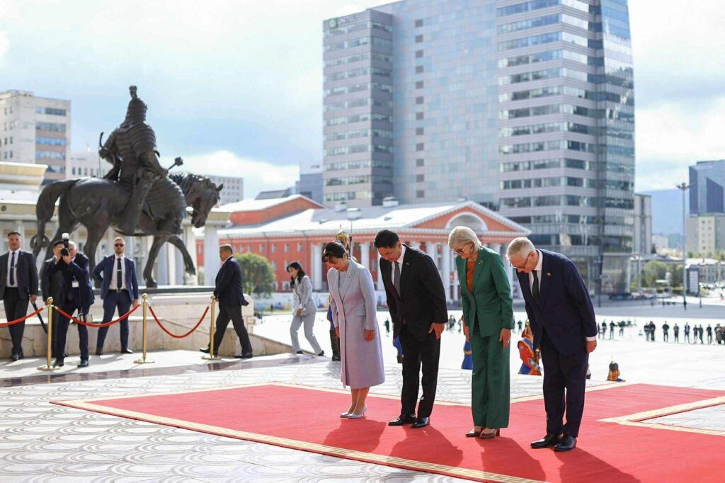 Президент Монголии официально приветствовал генерал-губернатора Содружества Австралии на центральной площади столицы. По приглашению президента Монголии Хурэлсуха Ухнаа генерал-губернатор Содружества Австралии г-жа Саманта Мостин и ее супруг Симеон Беккет с 4 по 9 сентября 2025 года посещают Монголию с государственным визитом. Президент Монголии Хурэлсух Ухнаа и его супруга Болорцэцэг Лувсандорж официально приветствовали генерал-губернатора Содружества Австралии Саманту Мостин и ее мужа Симеона Беккета на центральной площади Улан-Батора. После выступления Командующего Государственного почётного караула прозвучали государственные гимны двух стран. Президент Монголии в сопровождении супруги и высоких гостей поклонился белому флагу Государственного церемониального караула, а губернатор Саманта Мостин приветствовала солдат Государственного почётного караула. Президент Хурэлсух Ухнаа и губернатор Саманта Мостин приветствовали официальных лиц, глав дипломатических миссий в Монголии и предста