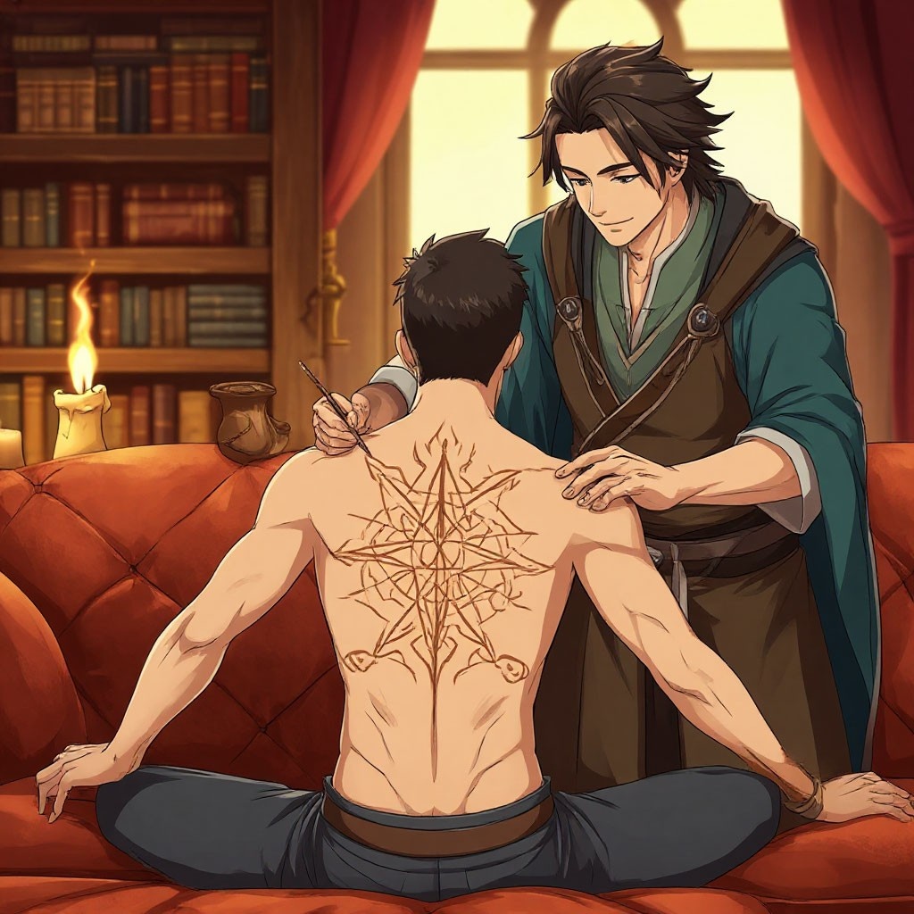 А вот второй способ более мощный и хитрый. Это прижечь с помощью магии. Но тут и нюансов больше. Ваш мастер должен обладать всеми прошлыми знаниями и к тому же быть магом. Сам процесс происходит так: после нанесения печати или рисунка вместо металла используют мистфический огонь. Процедура ещё более страшная и тяжёлая, но оно точно того стоит. Если всё сделать правильно, эффект превзойдёт все ваши ожидания. В отличие от предыдущих способов повышает сразу множество, а не 2-3, ваших характеристик и дарует новый навык или умение.