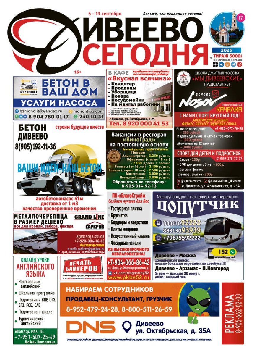 Дивеево Сегодня №17 от 05/09/2025 https://disk.yandex.ru/d/8vc6Pe-rYuq5rA