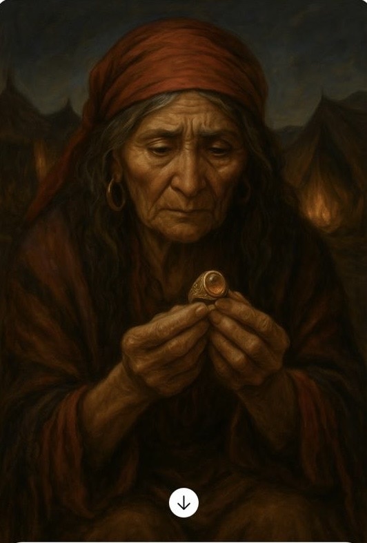 Молчание табора стало ощутимым. Даже дети приостановили беготню, а огонь в костре будто притих. Старуха протянула руки к кольцу, но не коснулась.