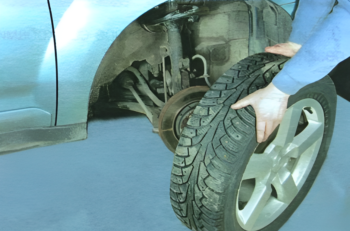 1. Поднимите и установите переднюю часть автомобиля на опоры. Снимите колесо.