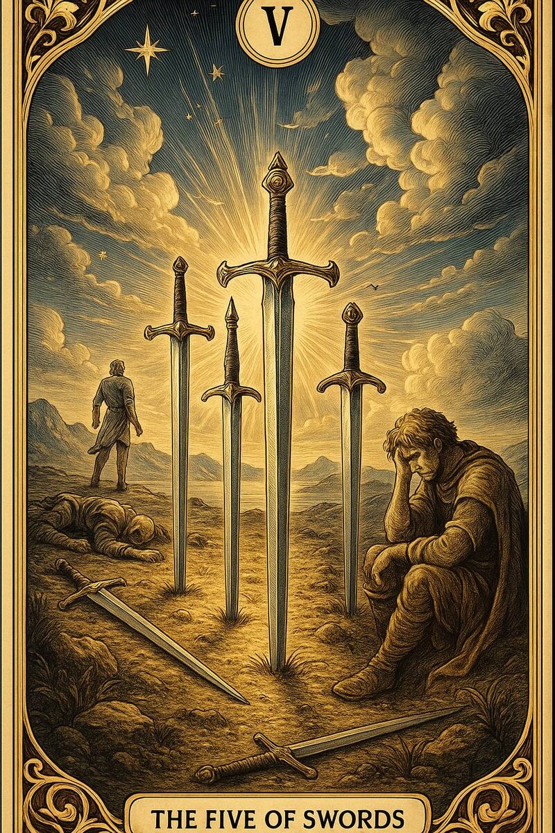 Карта дня: 5 Мечей Дата: 05.09.2025 Общее описание дня: День конфликтных итогов и тактической победы. Вы сталкиваетесь с последствиями борьбы, где выигрыш одной стороны неминуемо ведет к проигрышу другой. Истинная задача — выбрать: стоит ли победа цены разрушенных отношений. Как использовать этот день: · Избегайте прямых споров — даже ваша правота может стать ядом. · Если конфликт неизбежен, действуйте тактично: дайте оппоненту сохранить лицо. · Честно ответьте себе: «Ради чего я борюсь?» (истинная цель или просто гордыня?). Мантра на день: «Я выбираю мир там, где война бессмысленна. Моя сила — в мудрости, а не в пустой победе» Связь с 6 Кубков (04.09): Вчерашняя ностальгия и исцеление (6 Кубков) сталкивается с жёсткой реальностью конфликта. Нежность прошлого проверяется на прочность сегодняшними битвами.