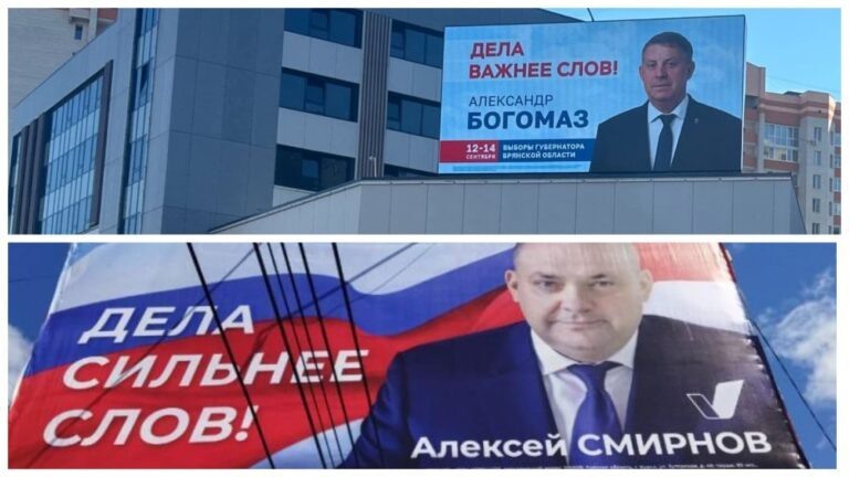 Уроженец брянского райцентра Навля Алексей Смирнов, арестованный весной 2025-го, год назад шел в Курске на выборы с лозунгом “Дела сильнее слов!”. Пиарщики подобрали намеренному переизбраться отцу Брянщины до неприличия похожий и оттого взывающий за него тревогу слоган “Дела важнее слов”.