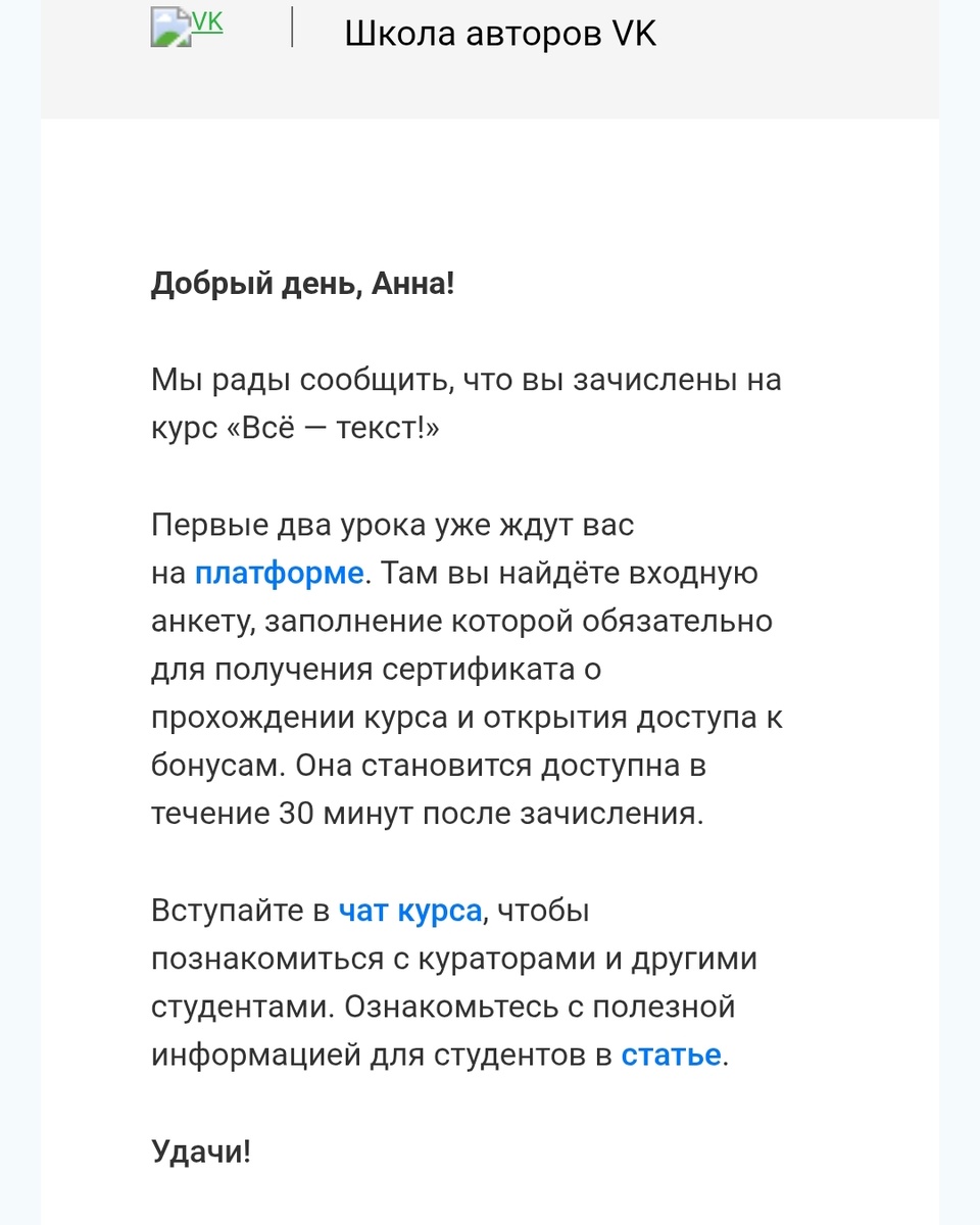 Три дня назад Дзен предложил всем поучаствовать в обучении на платформе ВК. Информация была размещена на канале @zenmag За регистрацию денег не просят и я зарегистрировалась.Не знала платно это или нет, так как вникать не было времени,потом в любом случае все расскажут)) И благополучно забыла я об этом событии. И какого было мое удивление, когда в 10 вечера приходит мне сообщение о том, что меня зачислили на курс и необходимо заполнить анкету. Не сразу я врубилась куда и зачем меня зачислили. И пошла я по ссылке смотреть куда же я опять влезла))) На ВК я очень редкий гость, годами туда не захожу, а еще мне уже не 20 и пришлось поднапрячься немного. Куда-то меня все время перекидывало и ндо было несколько раз подтвердить свой профиль. Ужас какой-то. Совет. Если пойдете на этот курс, то на компе удобнее немного и нагляднее, чем в мобильной версии. Хотя видео я смотрела на телефоне. Кстати, там много разных обучающих курсов по Дзен и не только. Единственное, что они уже в записи и про