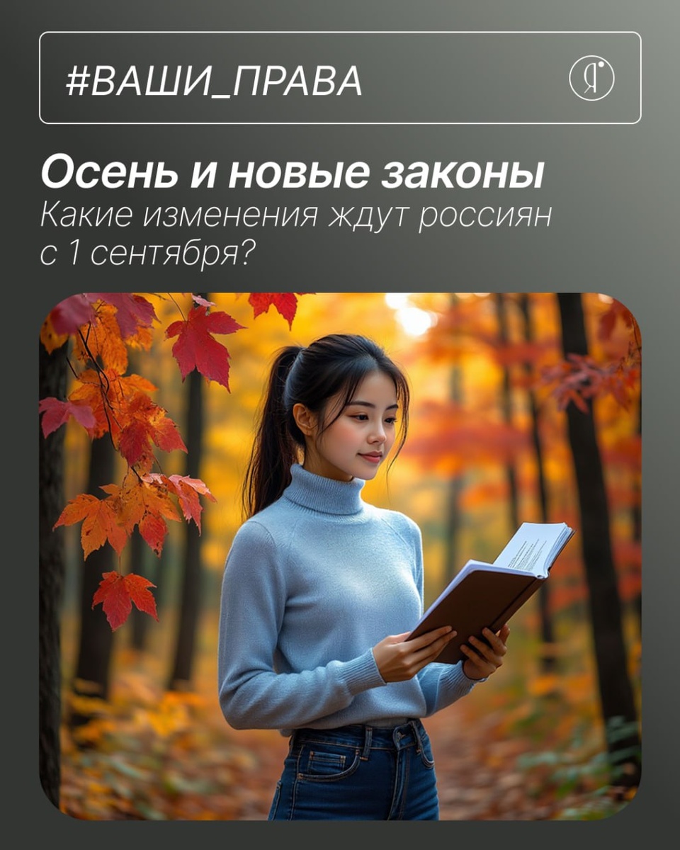 🤩 С 1 сентября в России вступают в силу новые законы #ОЯактуально Сегодня с каналом Блог якутского юриста рассказываем о главных изменениях, которые постепенно вступают в нашу повседневность с этой осени : 🤩 Интернет и VPN - Запрещена реклама и распространение VPN-сервисов. Штрафы для юрлиц - до 500 тыс. рублей. - Запрещена реклама в заблокированных соцсетях. - Штрафы за умышленный поиск экстремистских материалов - до 5 тыс. рублей. 🤩 Банки и наличные - Банки могут ограничить снятие наличных до 50 тыс. рублей/сутки при подозрительных операциях. 🤩 Образование - Поступление в вузы без ЕГЭ - только если специальность совпадает с профилем СПО. - Уменьшены часы английского в некоторых классах, упразднено обществознание в 6–7 классах. - Введены оценки за поведение (эксперимент в регионах). 🤩 Связь - Запрещена передача SIM-карт третьим лицам (кроме близких родственников). Штрафы - до 200 тыс. рублей. - При покупке SIM-карты клиентов будут снимать на камеру. 🤩 Авто - Госпошлины вы