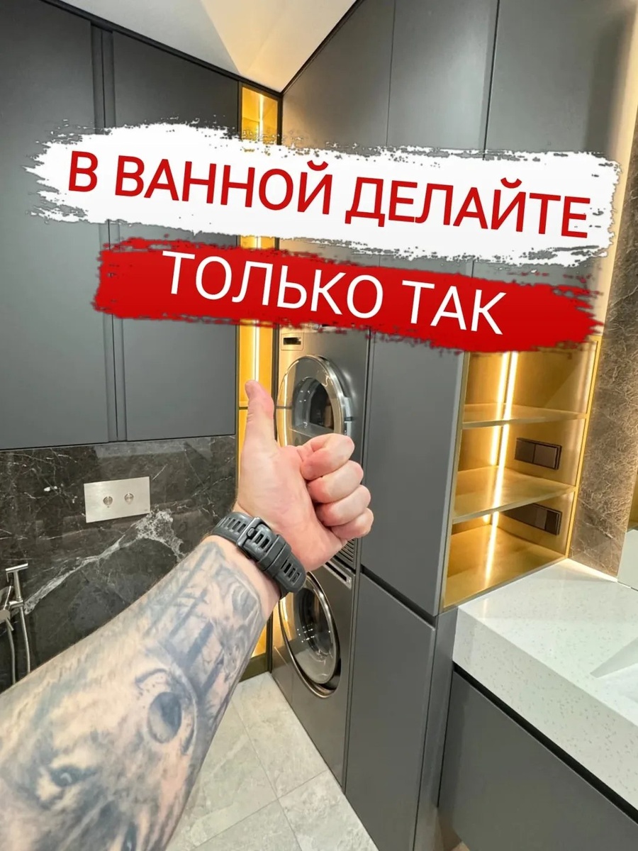 В ванной делайте только так! - Раковина интегрирована в столешницу и выполнена из искусственного камня - "Парящая ванна" - ниша для удобства подхода к ванне с подсветкой - Музыкальные колонки в натяжном потолке - Стиральная и сушильная машина в колонне - Коллекторный узел в мебели над инсталляцией - Решетка вентиляции скрытого монтажа - Розетки в удобном доступе около раковины Больше информации на странице @remont_kvartir_812