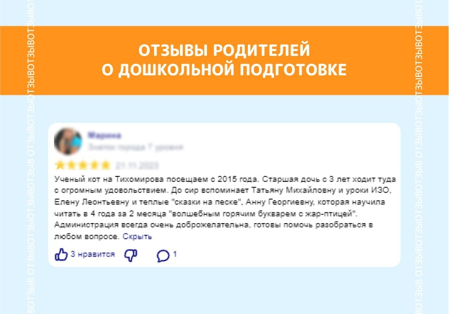 «Школьная программа первого класса значительно отстает от знаний, полученных в "Учёном коте" на дошкольной подготовке» — говорят наши