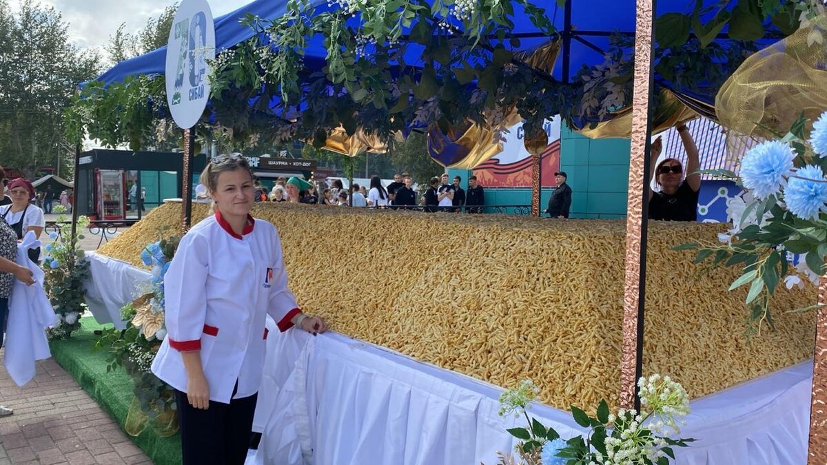 В башкирском Сибае изготовили чак-чак весом в тонну 👩🍳 Один из самых больших в России чак-чаков изготовили в башкирском Сибае, который сегодня празднует свое 70-летие. ⭐️ На главной площади развернулась праздничная программа. Изюминкой дня стал огромный чак-чак: – вес 980 килограммов, – длина более 6 метров. 🔖 Изготавливали украшение на протяжении 15 дней 22 пекаря. На блюдо было потрачено более 6,5 тысяч яиц, 123 килограмма меда и 330 килограммов муки. 🎆 Празднование 70-летия Сибая проходит в рамках VII Всероссийского инвестиционного сабантуя «Зауралье-2025».