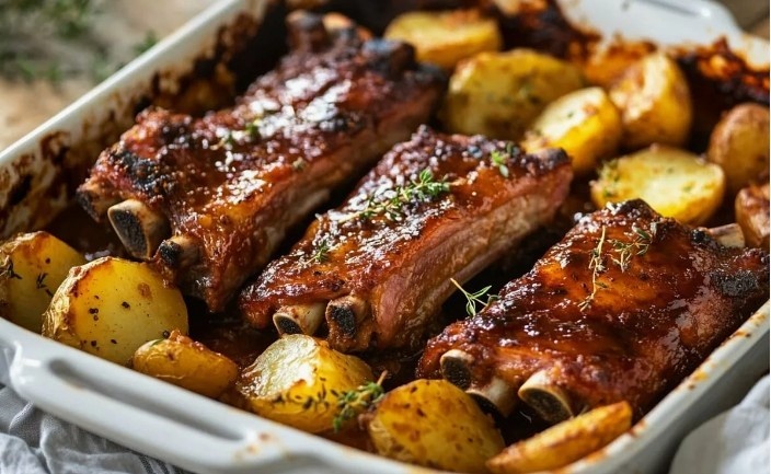 Представьте себе вечер, когда на вашем столе красуются золотистые, карамелизированные свиные рёбрышки, источающие аромат мёда и цитрусов, а рядом — хрустящий картофель с пряными травами. Этот ужин — не просто еда, а настоящая магия, которая превращает обычный вечер в маленький праздник. Свиные рёбрышки в медово-апельсиновом соусе с картофелем по-деревенски — это блюдо, которое выглядит как из ресторана, но готовится проще, чем кажется. Оно идеально подходит для уютного ужина с семьёй или для того, чтобы впечатлить гостей. Почему стоит попробовать? Потому что сочетание сладкого мёда, яркого апельсина и нежного мяса вызывает восторг, а картофель добавляет сытности и уюта.
