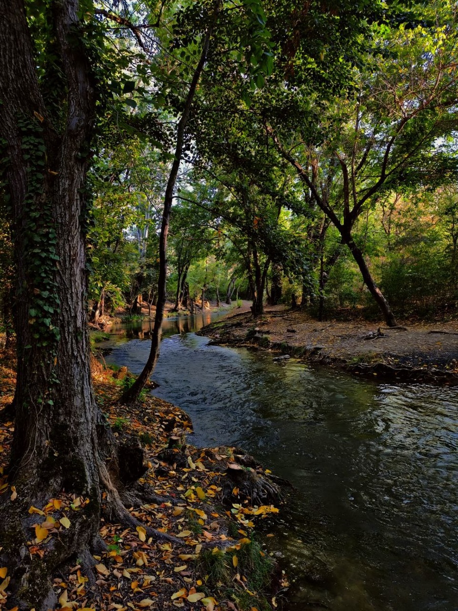 Знаете, я хотела написать стихотворение про осень. Но, пересматривая фотографии, поняла, что лучше всего этот прекрасный момент передаст обычная проза. Мы с семьёй поехали отдыхать на речку. Это место невероятно прекрасно и в осеннюю пору предстает во всей своей потрясающей красе. Как прошёл наш день? Замечательно! С самого утра всё закружилось: я бегу за мясом, мариную самый вкусный шашлык, забираю ребёнка со школы... И вот мы уже пакуем сумки, вызываем такси и мчимся по трассе. За окном мелькают невероятные красоты — горные возвышенности и виднеющееся вдали море у Балаклавы. Нас довозят до определённой точки. Делаем пару шагов — и мы уже в лесу. Воды реки буйствуют и шумят, а их прохлада так и манит окунуться. Мы распаковываемся, готовим костёр, нанизываем мясо на шампуры. Мужчины моей семьи, конечно же, первым делом рвутся искупаться. А водичка-то — бодрящая! Всё это сопровождается весёлыми разговорами, обсуждениями и тихим наслаждением красотой вокруг. Мы специально выб