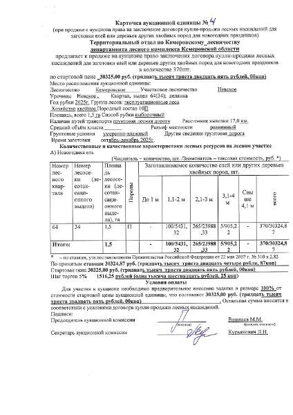 Название: Лесные насаждения для заготовки елей и (или) других хвойных пород для новогодних праздников Канал: Госземля Кемеровская область Область: - Район: - Населенный пункт: - Локация: Смотреть на карте ВРИ: Заготовка лесных ресурсов Кадастровый номер: 42:00:0000000:32 Кадастровая стоимость: - Вид сделки: Продажа Площадь: 15000 м² Начальная цена: 30325.00 руб. Дата завершения: 27.09.2025 Подробнее: ГИС ТОРГИ #госземля #земляотгосударства #земля #земельныйучасток #земельныеторги #торги #аукцион #продажаземли #продажа #кемеровскаяобласть
