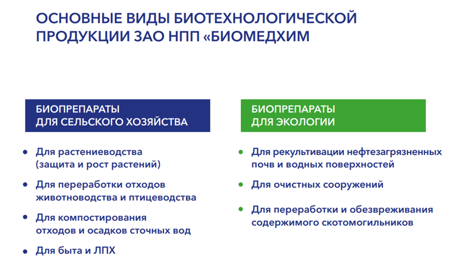 Сейчас в каталоге на сайте НПП “БиоМедХим” содержится 19 наименований биопрепаратов. Достижений много, но это еще не предел!