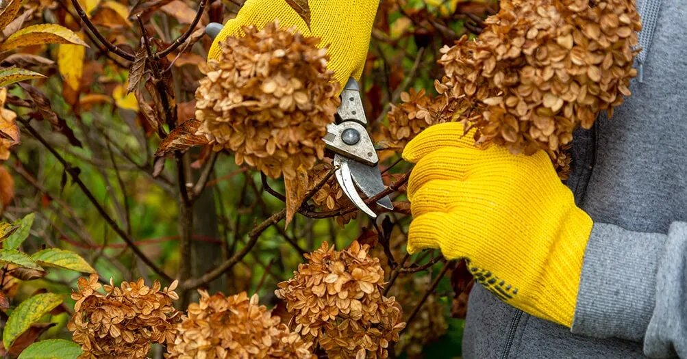 У гортензий, цветущих на побегах прошлого года, желательно удалять, как минимум, увядшие соцветия. Это поможет им перенаправить силы на созревание прироста и подготовки к холодному времени года. Для всех разновидностей гортензий осенью необходима санитарная обрезка – удаление сухих и больных побегов.