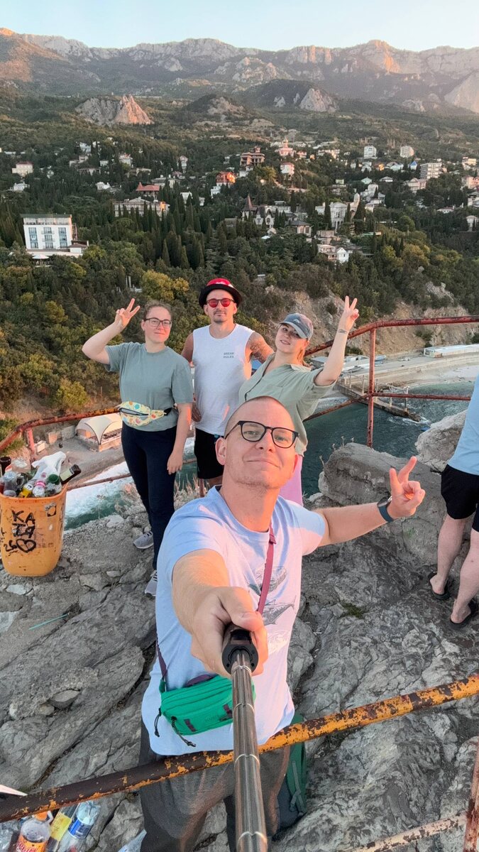 Я встречал рассвет наверно только один раз, в Питере (когда после коллективной тусовки не хотелось ехать в отель) не считая ночной «Совы» (ночной забег с финишем около рассвета). Накануне было решено подняться на скалу Диву и встретить там рассвет. Что из себя представляет: Тюркское название скалы Дзива/Джива, по одной из версий, представляет собой, скорее всего, ассимиляцию индоарийского реликта diva - бог, божественный. Скала Дива вместе с горой Кошка изображены на флаге и гербе Симеиза. Находится в западной части южного берега Крыма. Подъем занимает около пяти-десяти минут по достаточно крутым ступенькам. В верхней части есть перила и смотровая площадка с которой открывается вид на западное и восточное побережье. Очень красиво, правда для меня это очередной челлендж. Я человек закатов, а не рассветов и для меня это настоящее испытание в такую рань лезть на скалу. Насладитесь теплотой и нежностью восходящих потоков и лучей солнца поднимающегося с востока 🤩