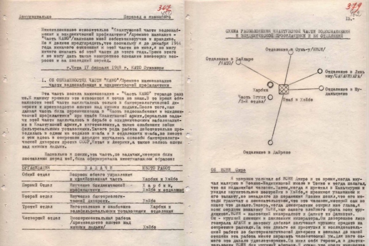 Япония собиралась применить бактериологическое оружие против СССР. Это следует из рассекреченных ФСБ документов. В результате разгрома Квантунской армии в августе 1945 года в руки советских органов госбезопасности попали многочисленные документы из архивов японских контрразведывательных органов в Маньчжурии. Так, японский Генштаб планировал заразить оставляемую территорию в случае отступления. Также японцы намеревались применять бактериологическое оружие непосредственно в ходе наступательных действий против Красной армии. Для проверки действия различных бактерий японские ученые производили опыты над людьми, для чего в специальном лагере содержались русские, китайцы, маньчжуры и осужденные к смертной казни японцы. Ежегодно здесь убивали свыше 3600 человек. Смерть наступала в результате заражения от специально выкормленных блох — они получали заразу от белых мышей. Опыты производили со всеми видами чумы, сибирской язвы, газовой гангрены, сыпным и брюшным тифом, дизентерией, холерой.