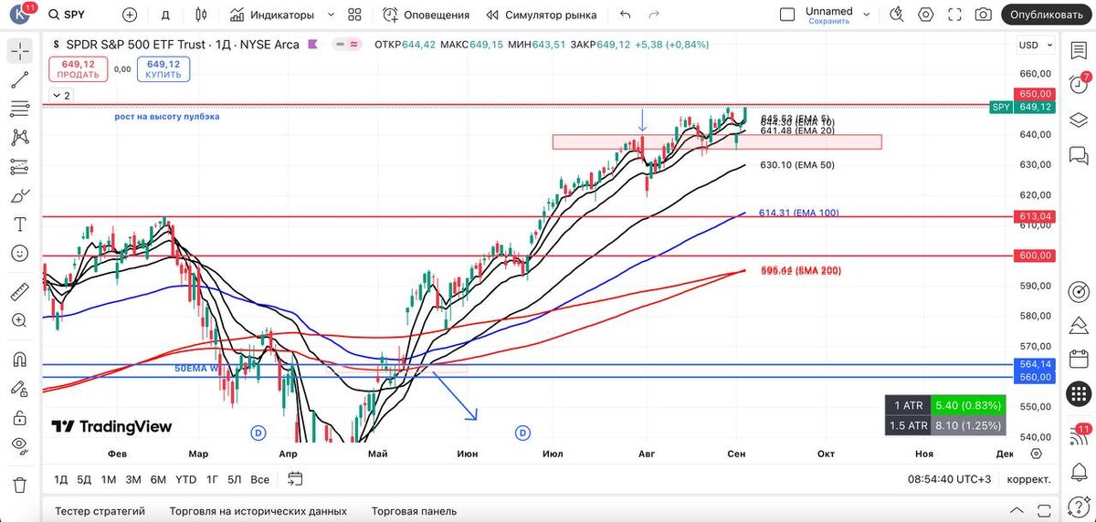 ВЫВОД : продолжается движение вверх, и для $SPY и $DIA всё выглядит позитивно — подошли к своим максимумам, сейчас главное не увидеть такую же реакцию, как на прошлой неделе = это будет признаком слабости. $QQQ вернулся за все скользящие, но пока что одним днём = в идеале увидеть 3–4 уверенных зелёных дня. Однако, глядя на $MAGS (7 главных компаний), после пулбэка пробили исторический максимум = хороший знак для продолжения движения выше. $SVIX вновь подошёл к своим 200 SMA D - 200 EMA D = исключу повторной реакции. Как говорил на этой неделе, после зелёных дней можем увидеть распродажу. А учитывая, как часто в последнее время мы пробиваем 20 EMA D и ещё ГЭПом, не удивлюсь повторному развитию такого сценария = это будет признаком слабости. Пока что позиции выглядят нормально; учитывая сильные дни, я смог добавить ещё позиций. Хоть на рынке и присутствует неопределённость, работаю только в направлении тренда. И при уверенном пробое продолжу добавлять позиции. #spy #технический_анал