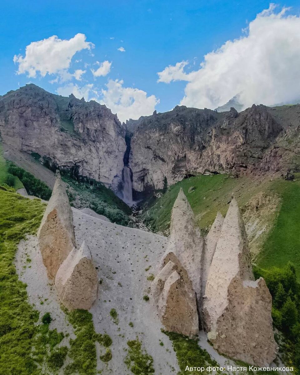 Долина замков (зубы дракона) Одна из визитных карточек урочища Джилы-Су (Кабардино-Балкария) – замки из лавовых камней. Эти нерукотворные красоты годами встречают туристов в ущелье Кала-Кулак. Другое название этих остроконечных камней – «зубы дракона». Остроконечные пирамиды появились в те смутные времена, когда лавовые потоки непрерывно текли по здешним склонам, словно кипящие реки. Со временем они застывали в причудливые фигуры. Теперь же Долина замков Джилы-Су украшена множественными монолитными изваяниями, поражающими воображение своими размерами – несколько мегалитов высотой превосходят пятиэтажный дом! 📌Долина замков (зубы дракона) на карте #кабардинобалкария #зубыдракона #долиназамков