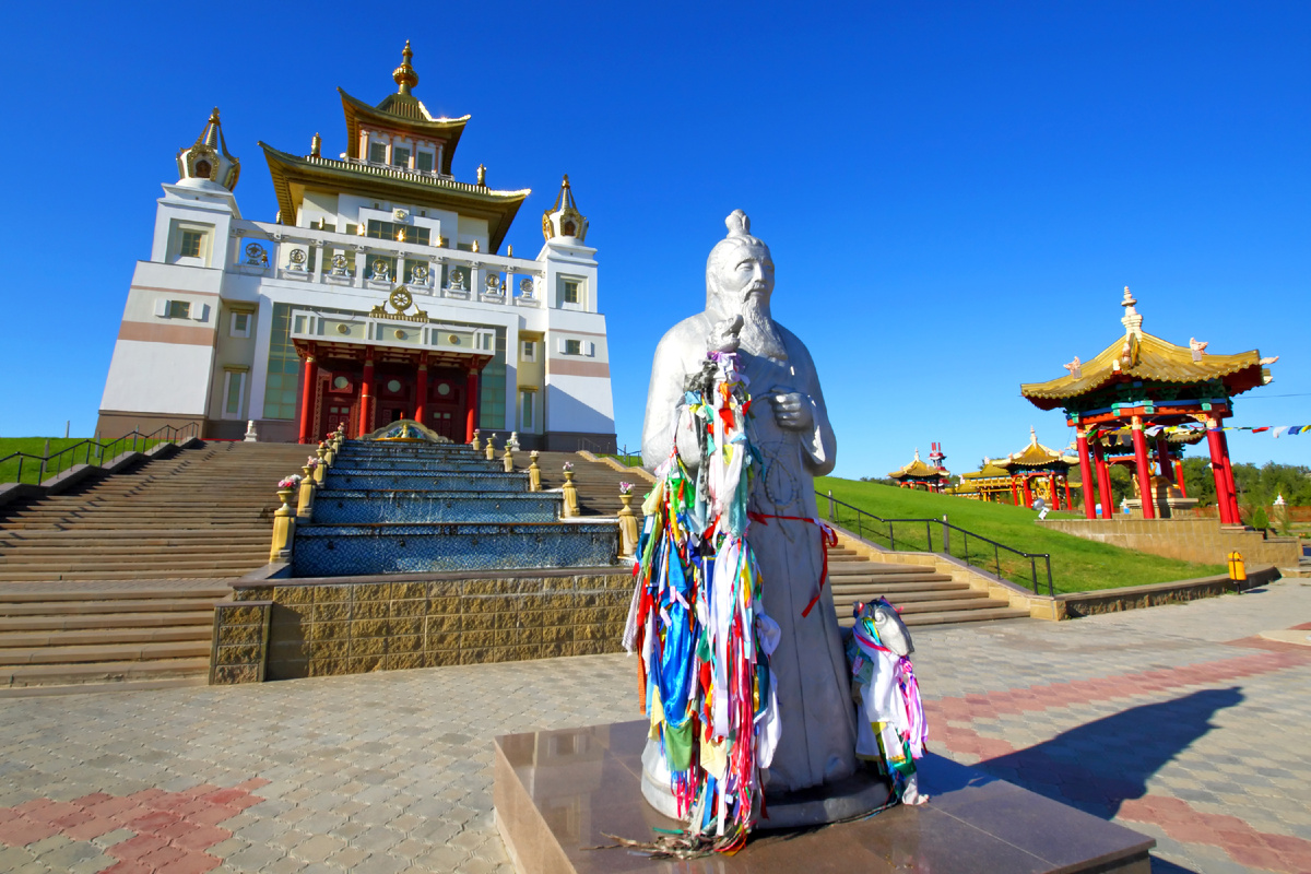 В Калмыкии — и в ее столице тоже — есть пагоды, буддийские ступы и развевающиеся на ветру молитвенные флажки. Сегодня это единственный в Европе регион, где традиционно исповедуют буддизм. Когда проходишь под Золотыми Воротами или крутишь молитвенный барабан Пагоды Семи Дней, не покидает ощущение, что попал в какой-то диковинный восточный город.