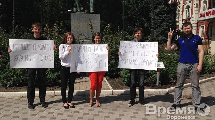20 августа у кинотеатра «Пролетарий» прошёл пикет против незаконно установленных в Воронеже рекламных щитов