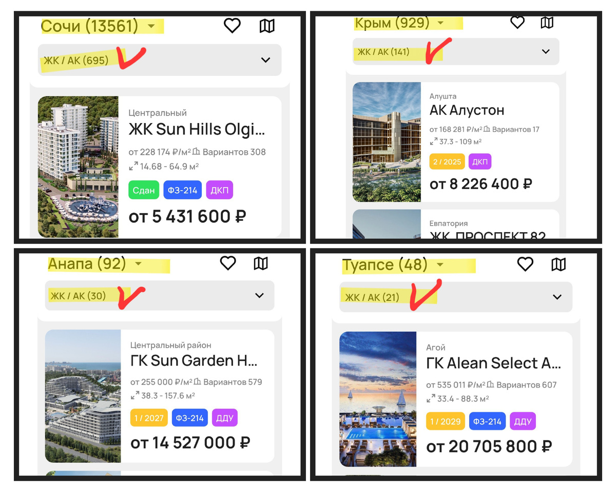 ✔️ Строящиеся Жилые комплексы... так как для быстрой перепродажи этот сегмент не подходит по причине огромного числа "инвесторов" вошедших в проекты по траншевым, семейным и субсидированным ипотекам 👇...