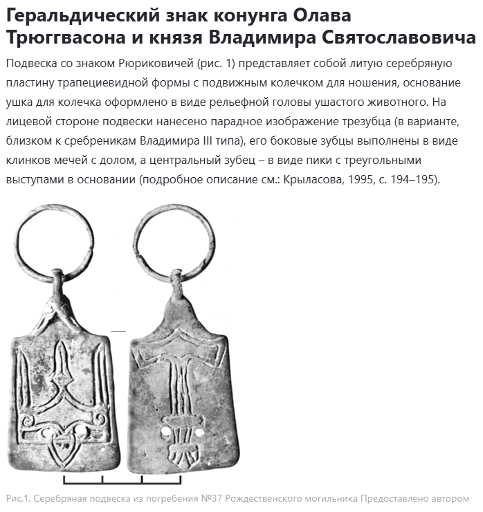 Забавно, что пишут о том что некоторые тамги местных могли произойти от этих знаков. Гребень может быть датирован по материалам слоя X – началом XI вв. Крестообразный знак, расположенный в центре двузубца, вырезан несколько глубже и, по мнению А.О. Амелькина, связан с исправлением тамги Святослава Игоревича на тамгу его сына Владимира Святославовича. С.В. Белецкий, разбирая этот знак, пришел к выводу, что изначально тамга на гребне изображала знак Олега Святославича древлянского – второго сына Святослава Игоревича (годы правления 970–977) (Белецкий, 2012, с.437). По справедливой оценке А.О. Амелькина, простой костяной гребень не мог быть импортным изделием, и не мог нести признаков социального статуса. Возможно, это – пример попытки подражать металлическим и костяным трапециевидным подвескам со знаками Рю
