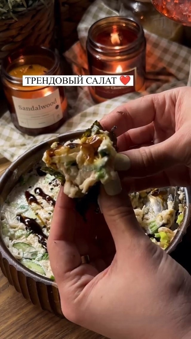 Привет, мои хорошие! 💖 Обожаю такие рецепты, которые вроде бы и простые, но при этом выглядят и ощущаются как что-то из модного ресторана. Этот тренд-салат — именно такой! Это, по сути, деконструированный ролл, только без заморочек с рисом и циновкой. Сочно, ярко, и вкус просто невероятный. А этот соус... М-м-м, это просто песня! Секрет этого блюда — в его заправке и необычном сочетании текстур. Хрустящий огурец, нежный творожный сыр, копчёная икра, и всё это в объятиях соевого и шрирача соусов. Поверьте, это так просто, что вы удивитесь! Ингредиенты (на 2 порции): Как приготовить (пошаговая инструкция): Вот и всё! Ваш невероятный трендовый салат готов. Подавайте его сразу, пока всё свежее, и наслаждайтесь каждым кусочком. Это просто идеальный вариант для быстрого и лёгкого ужина. Ну что, мои дорогие, как вам такой рецепт? Кто уже готов бежать на кухню и радовать своих близких? Расскажите, что бы вы ещё добавили в этот салат, чтобы сделать его ещё вкуснее?