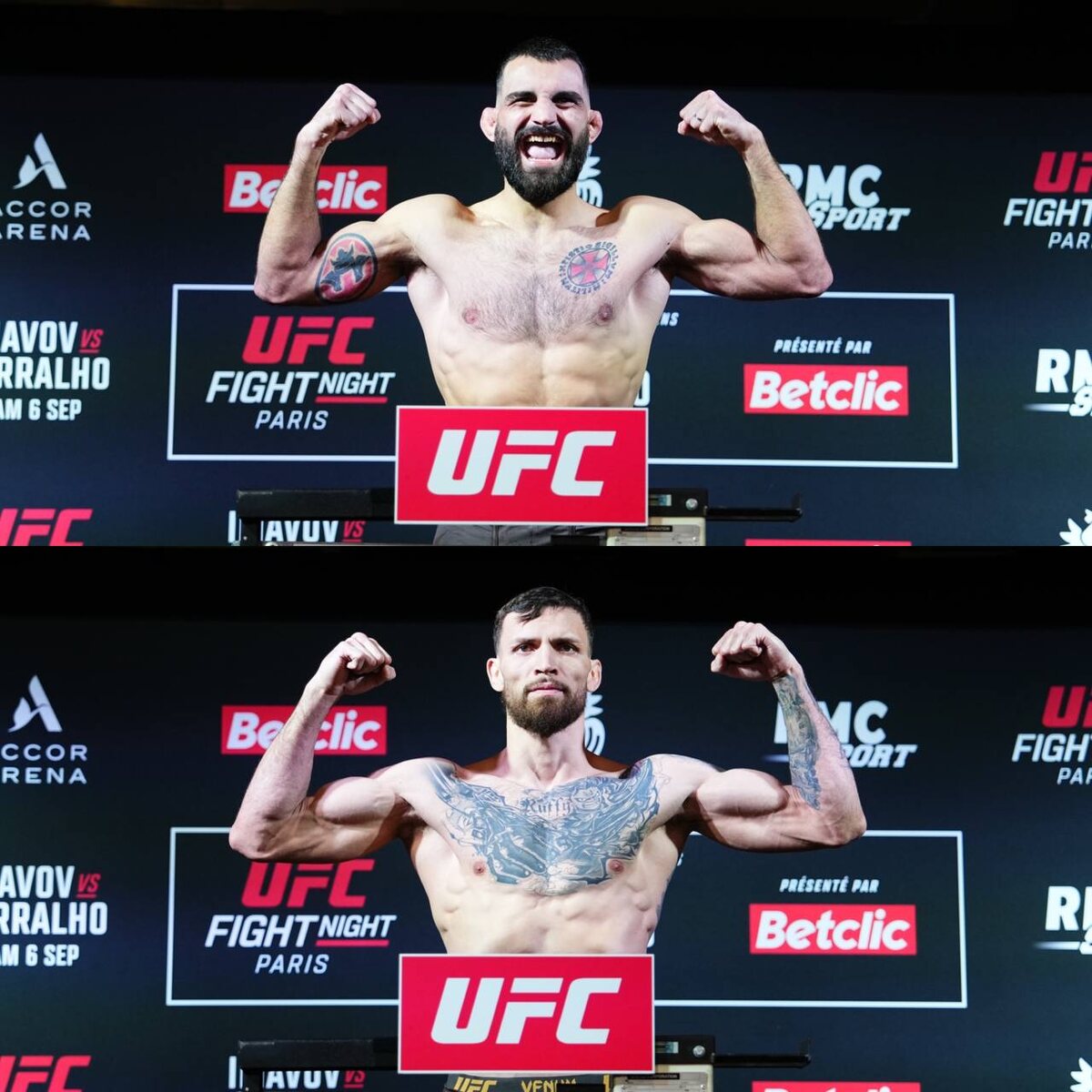 Со-главный поединок в силе, парни заряжены: Сэн-Дени показал 70,31 кг, Руффи – 70,76 кг.
